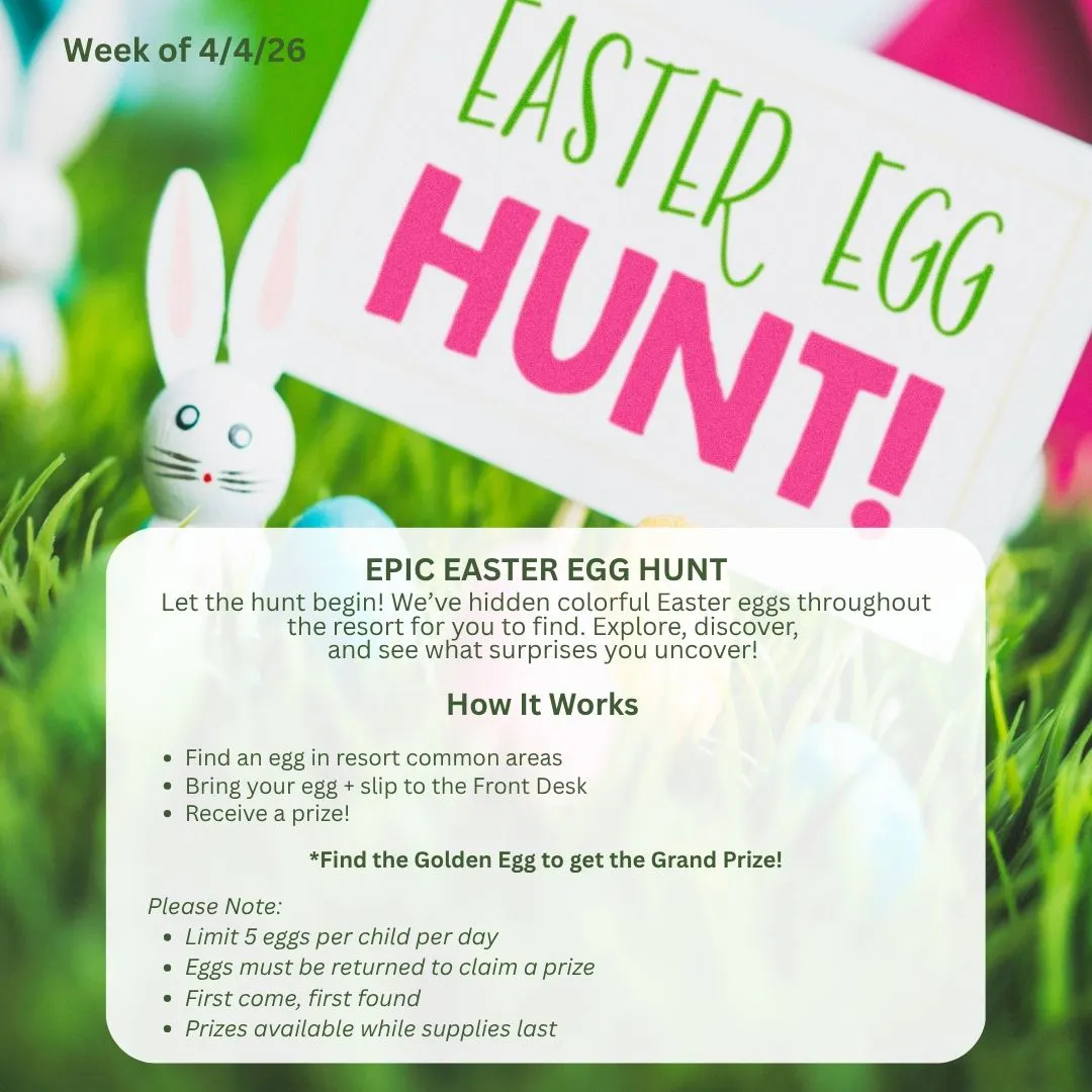 Make it a night at the resort. Our weekly game night rotates between Trivia and Music Bingo, bringing guests together for laughs and lighthearted competition.
